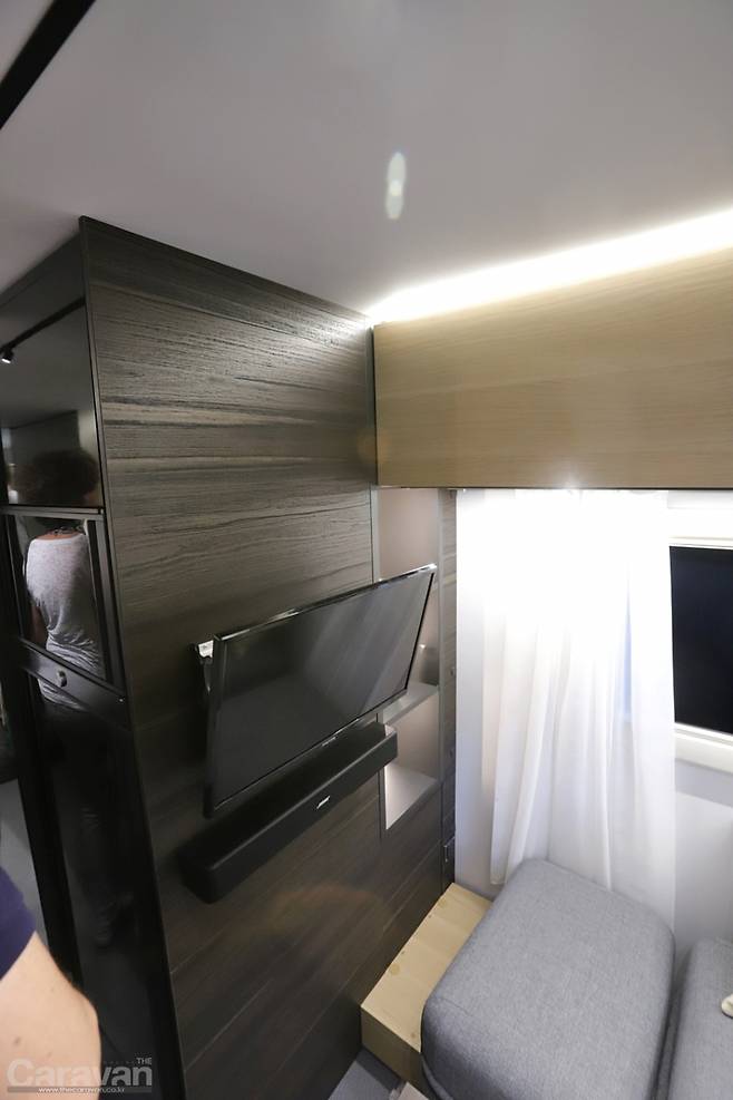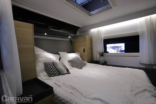 아드리아의 고급 샤워 시설, 세면대, 변기가 적용됐다. 후면에 넓게 자리 잡은 침실에는 옥타 스프링 매트리스가 있는 퀸사이즈 침대와 수납장이 있고, 위로 파노라마 창과 헤키창까지 넣어 침실도 답답함 없이 생활할 수 있게 했다. 실내와 가구 곳곳에는 LED 조명이 적용되어 은은하면서도 밝게 공간은 비춘다.
