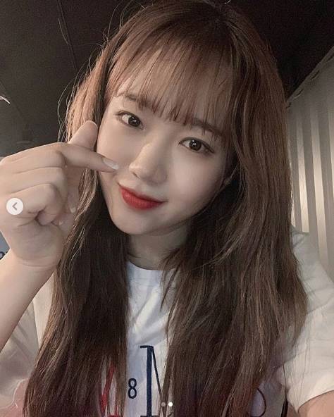 사진 속 최유정은 손하트 포즈로 팬들을 향한 애정을 드러내고 있다.
