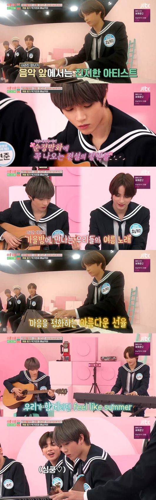 이어 기타 독학으로 오디션에 합격했다는 범규가 기타를 잡았고, 휴닝카이와 함께 데뷔앨범에 수록된 'Our Summer'를 선보여 뜨거운 호응을 얻었다. 순정만화에 나올 법한 두 사람의 하모니가 모두의 시선을 사로 잡았다.