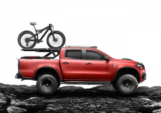 슈퍼카 및 픽업트럭 튜너로 유명한 폴란드의 '칼렉스(Carlex) 디자인'이 아웃도어 마니아들을 위한 맞춤 자전거 거치대를 벤츠 X-클래스에 부착, 시선을 사로잡았다.