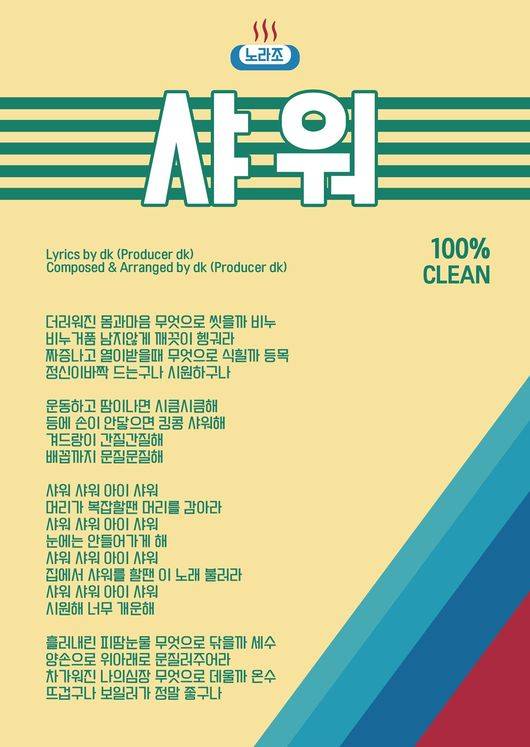 노라조, 신곡 '샤워' 커버 이미지·가사 공개.."깨끗한 몸에 깨끗한 정신"