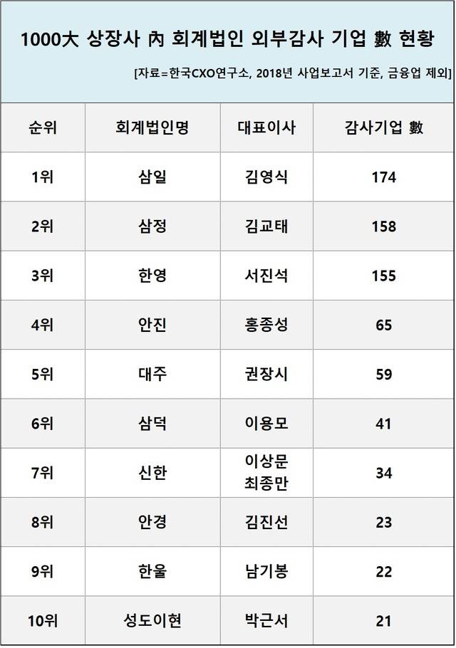 삼일회계법인 1000곳 중 174곳 외부 감사 최다..삼정(158곳)>한영(155곳)>안진(65곳) 順