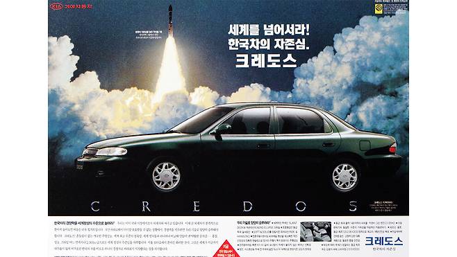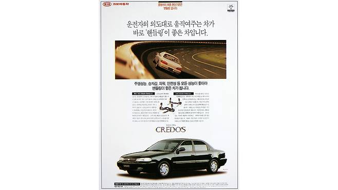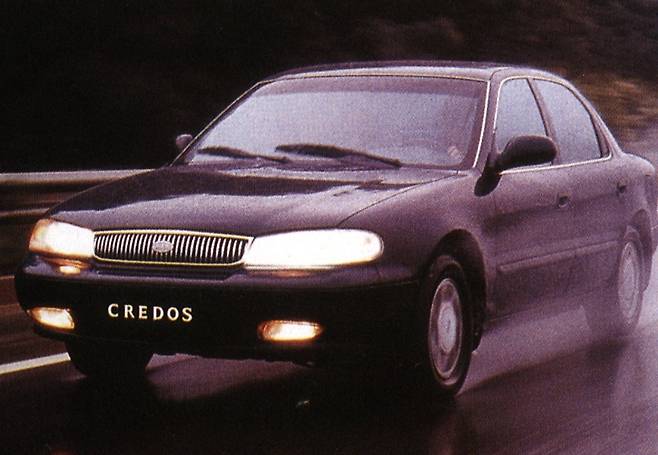 1981년, 정부의 ‘자동차공업 합리화조치’ 이후 기아는 브리사를 생산할 수 없었다. 위기를 맞은 기아는 ‘봉고신화’로 판을 뒤집었다. 또한, 프라이드와 스포티지, 콩코드, 세피아 등 걸출한 승용차 라인업을 부지런히 살찌우며 다시 한 번 ‘기술의 기아’로서 입지를 다졌다. 그 방점을 찍는 차가 오늘 소개할 크레도스로, 1995년 기아가 독자 개발한 중형차다. 기아는 1962년 삼륜차 K-360을 내놓을 때부터 일본 마쓰다와 협력관계를 맺었다. 브리사와 봉고의 밑바탕 또한 마쓰다였다. 그러나 프라이드 출시를 계기로 위기감 느낀 마쓰다가 견제에 나서면서, 1990년대 기아는 독자생존을 모색 중이었다. 크레도스는 콩코드의 후속이다. 기아의 세 번째 독자개발 승용차로, 4년 5개월간 약 5,100억 원을 들여 완성했다.