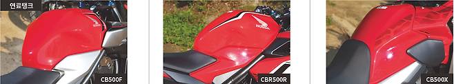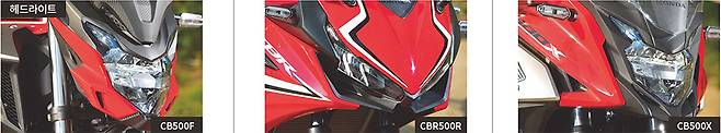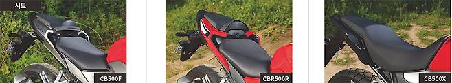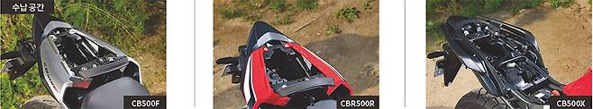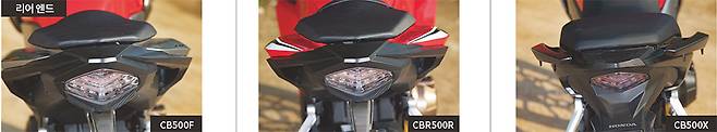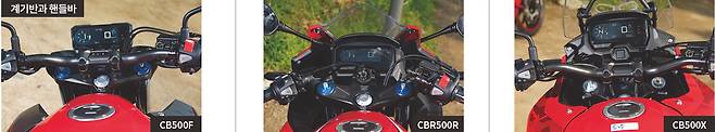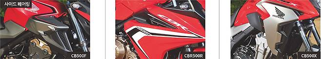 CB500F 세 모델 모두 같은 부품을 공유하고 위치도 같아서 오히려 네이키드 쪽이 뉴트럴이라고 볼 수 있다