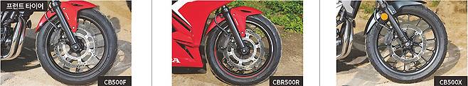 CB500F CBR500R과 공유하는 17인치 Y자 스포크 휠을 사용한다