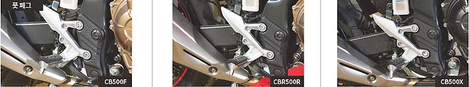 CB500X 오프로드 사양을 염두에 둔 풋 페그가 연출되었으면 어땠을까