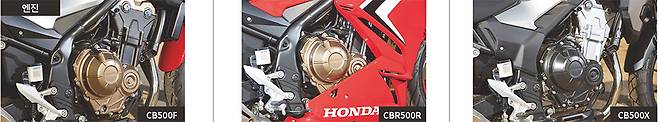 CB500X 다른 두 모델과 달리 엔진 컬러를 블랙과 실버의 조합으로 연출했다