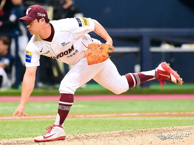 [엑스포츠뉴스 고척, 김한준 기자] 27일 오후 서울 구로구 고척스카이돔에서 열린 '2019 신한은행 MY CAR KBO리그 NC 다이노스와 키움 히어로즈의 경기, 8회초 키움 김상수가 공을 힘차게 던지고 있다.