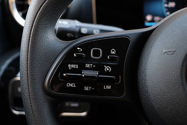 시승차는 내비게이션과 무선 충전 및 연결, 스마트폰 연동 등이 채용되지 않았다. 모두 옵션으로 설정됐다. ADAS 기능 중 ACC인 디스트로닉도 없다. 한국 시장에서 ‘3천만 원대의 벤츠’라는 이미지를 위한 설정으로 보인다. 그래도 메르세데스 벤츠라는 브랜드에 기대하는 것을 고려한다면 조금은 부족하다는 생각이다. 다기능 스포츠 스티어링 휠은 채용되어 있고 시프트 패들도 있다.