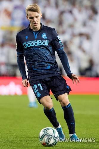 epa08020827 Real Sociedad's midfielder Martin Odegaard in action during the Spanish LaLiga soccer match between Real Madrid and Real Sociedad at Santiago Bernabeu stadium in Madrid, Spain, 23 November 2019. EPA/Rodrigo Jimenez