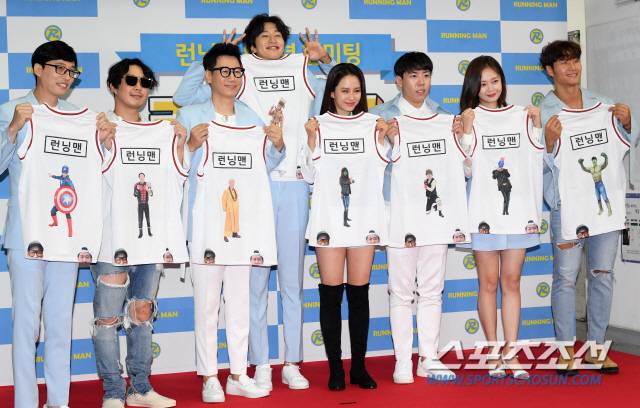 런닝맨 멤버들(유재석 지석진 이광수 송지효 전소민 김종국 양세찬 하하)이 26일 이화여자대학교 대강당에서 진행된 SBS 예능 프로그램 '런닝맨' 9주년 기념 팬미팅 '런닝구' 포토월에 참석해 포토타임을 갖고 있다. 허상욱 기자 wook@sportschosun.com/2019.08.26/