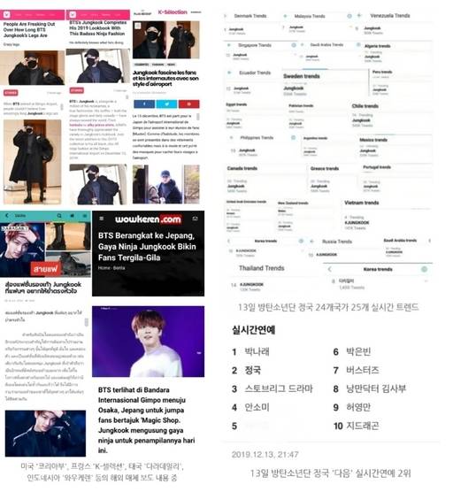 이에 트위터상 'Jungkook, #JUNGKOOK, 다리길이'로 24개국 실시간 트렌드와 국내 포털 사이트 다음 실시간 연예 2위에도 올랐다.