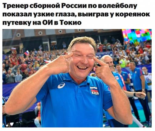 러시아 여자 배구 국가대표팀 세르지오 부사토(53·이탈리아·사진) 코치는 인종차별적 제스쳐를 취한 것이 논란이 되자 "도쿄 올림픽에 나가게 된 것을 축하하기 위했던 것"이라고 납득하기 어려운 해명을 했다.