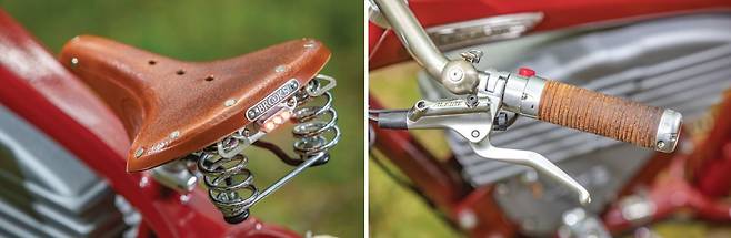 트래커는 장식적인 요소가 배제된 탓인지 이전에 테스트했던 스크램블러보다 훨씬 고전적인 스타일이다. 그래서 오히려 더 예쁘다. 컬러는 고전적인 인디언 모터사이클이 떠오르는 색 조합이다. 컬러 이름도 인디 레드(indy red)다. 여기에 슈발베의 팻프랭크 화이트 타이어가 고전미를 더욱 강조한다. 때타는 게 걱정되지만 프레임 컬러와의 조합이 아주 좋기 때문에 아주 좋은 선택이다.
