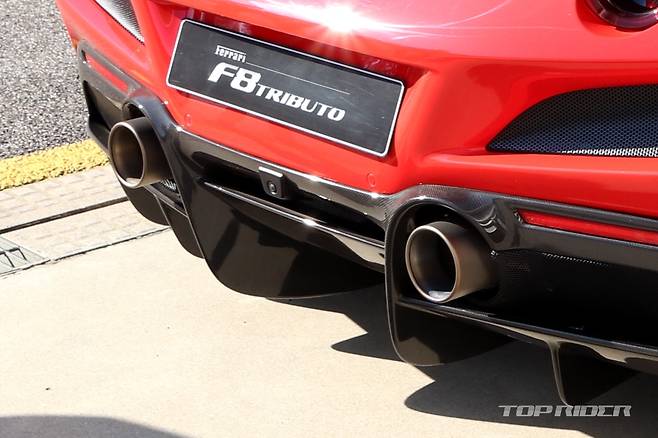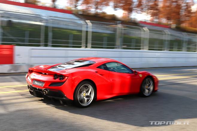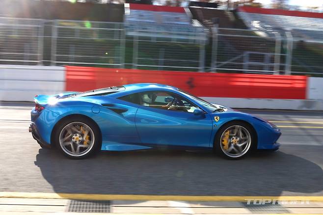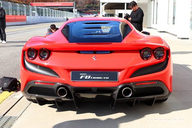 시승은 안전을 위해 전자장비가 개입하는 스포츠모드로만 진행됐다. 서킷에 오르자 F8 트리뷰토는 물 만난 물고기였다. 가속을 시작하자 자연흡기 엔진을 방불케 하는 엔진음과 배기음이 들려온다. 터보엔진을 탑재했지만 페라리 고유의 사운드를 그대로 구현한 덕분이다.