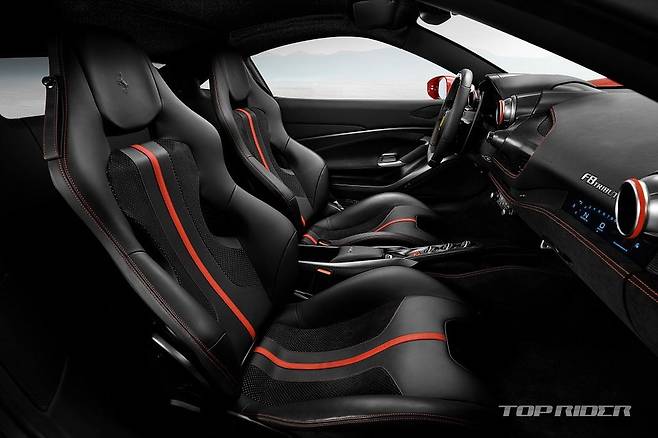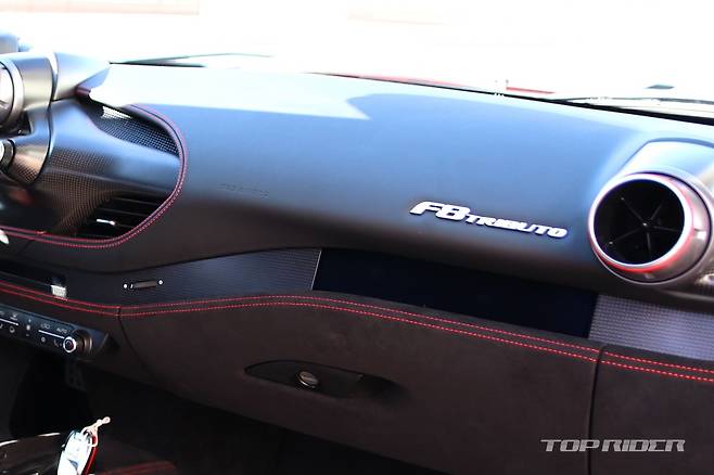 여기에 F1 7단 듀얼 클러치 미션과 결합돼 정지상태에서 시속 100km까지 걸리는 시간은 2.9초에 불과하며 최고속도는 시속 340km다. 본격적인 시승을 위해 F8 트리뷰토에 올랐다. 다소 불편해 보이던 버킷시트의 착좌감은 의외로 편안했다.