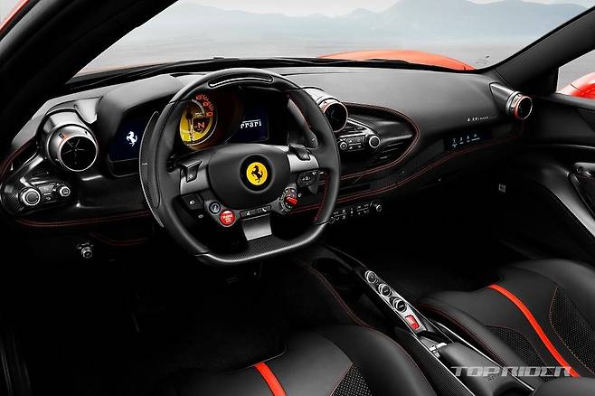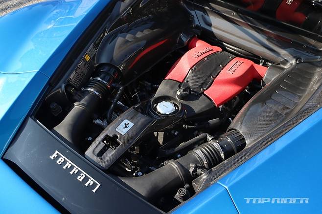 아울러 대시보드에도 터치스크린이 탑재돼 동승자 역시 운전의 재미를 함께 느낄 수 있다. 시트와 뒷바퀴 사이에는 페라리가 자랑하는 V8 엔진이 올라가 있다. V8 트윈 터보엔진은 최고출력 720마력, 최대토크 78.5kgm를 뿜어낸다. 최고출력은 8000rpm에서 발휘된다.