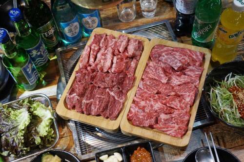 각 세트는 기본적으로 갈비살과 토시살로 구성됐으며 고기 양에 따라 황세트는 600g+600g, 소세트는 450g+450g, 야세트는 300g+300g으로 즐길 수 있다. 또한 소고기 부위 중에서도 유달리 마블링이 많다는 진꽃살(진갈비살)을 맛볼 수 있는 진꽃스페셜도 300g+300g으로 구성됐다.