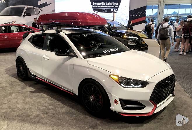 5일 열린 SEMA의 현대자동차 부스에서 메인 모델은 벨로스터 N이다. 전시차 8대 가운데 5대가 벨로스터 N이다. 입구에는 기본형 벨로스터 N을 비롯한 3대가 잘 보이도록 구성했고 비시모토 엔지니어링(Bisimoto Engineering)에서 튜닝한 벨로스터 N이 그 뒤를 이었다. 겉모습에서는 ‘fifteen52’의 휠 외엔 기본형과 차이가 없다. 하지만 대용량 터빈으로 업그레이드 하고 흡기와 냉각계통을 최적화 해 최고출력 320마력 이상을 발휘한다.