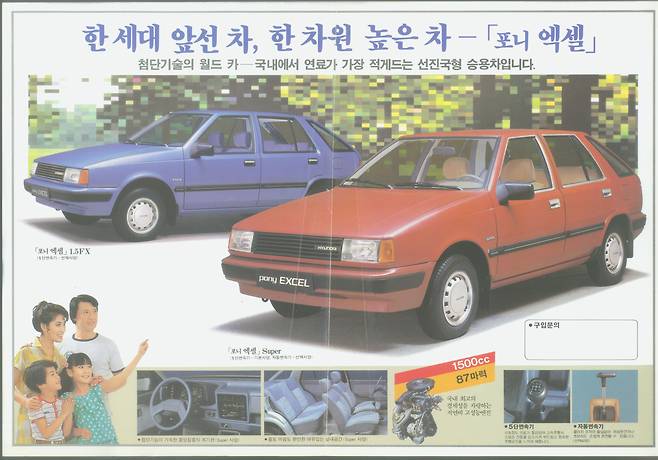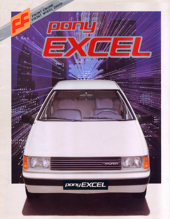 한편, 현대자동차(이후 현대차)는 1978년부터 ‘X카 프로젝트’, 즉 앞바퀴 굴림 자동차를 준비했다. 현대차는 수없이 퇴짜 맞은 끝에 일본 미쓰비시로부터 기술을 들여와 계획을 구체화했다. 1984년 1월부터 35대의 프로토타입(시제작차)을 만들어 각종 테스트에 나섰다. 이후 수백 대를 더 제작해 캐나다에서 혹한 테스트, 미국에선 종합 성능테스트를 치렀다. X카의 차명은 ‘엑셀(Excel)’로 정했다. ‘뛰어나다’는 뜻의 영단어 ‘Excellent’에서 따왔다. 스타일링은 포니와 포니Ⅱ, 스텔라를 그린 이태리의 조르제토 주지아로가 맡았다. 엑셀은 길이와 너비, 높이 3,985×1,595×1,380㎜의 차체에 직렬 4기통 1.3L 77마력, 1.5L 87마력 엔진을 얹었다. 미쓰비시 뉴 미라지용 엔진을 기반으로, 배기량과 출력을 키웠다.