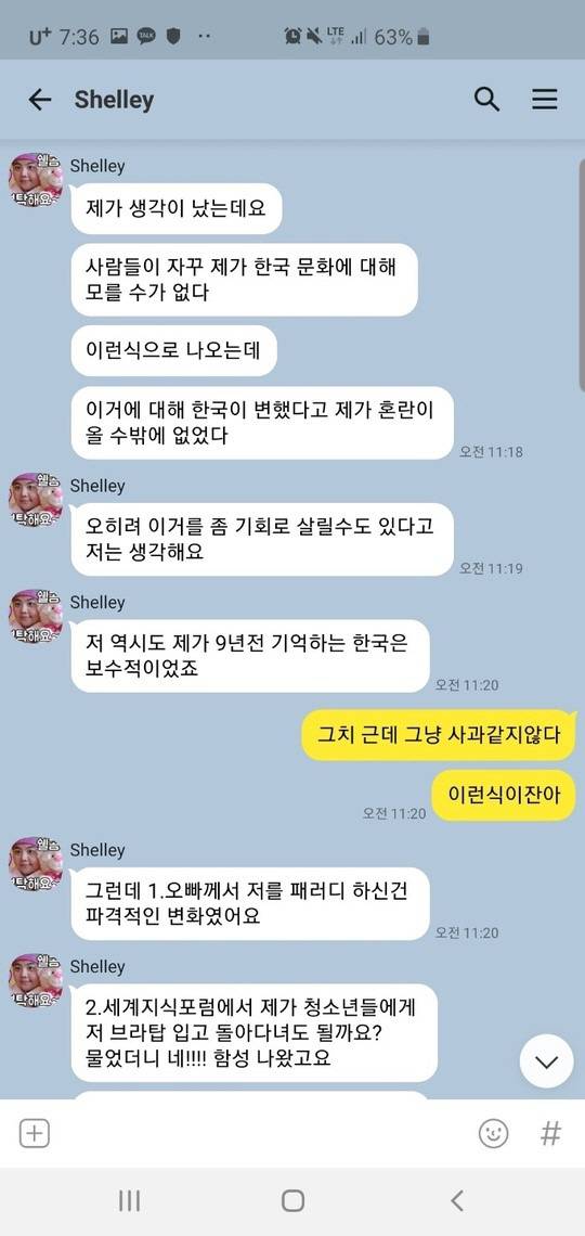 7.몰카 발언 방송에서 논란이 된 부분에 대해 구도쉘리가 "이해하지 못하겠다 , 한국 문화가 어떠냐 , 어떤 부분이 문제가 되냐" 물어보며 자신의 문제를 계속해서 해결하고 싶어했다 .이에 답을 해주다 보니 사과 내용에 더 깊게 관여하게 되었다. 얘기를 하기 전에 어쨌든 최종 결정은 구도쉘리가 하는 것이고 우리가 말한 내용은 참고만 해달라고 거듭 강조하기도 했다 .