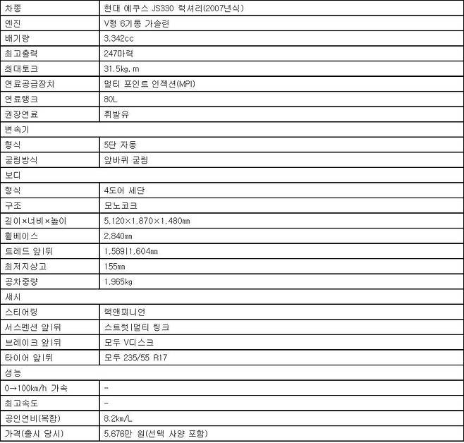 이 밖에 딱히 불만은 없다. V6 3.3L MPI 엔진이 끌어내는 247마력 최고출력은 아직도 차고 넘치며, 고회전으로 치달으며 내는 자연흡기 6기통 엔진 소리는 고성능 차를 향한 기자의 욕망을 잠재운다. 편의장치 역시 요즘 차 못지않게 풍부하다. 여기에 첨단 운전자 보조 장치까지 바라면 너무 과욕이 아닐까.