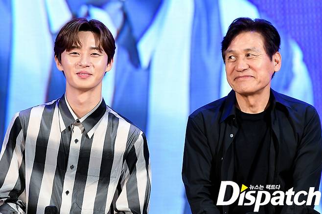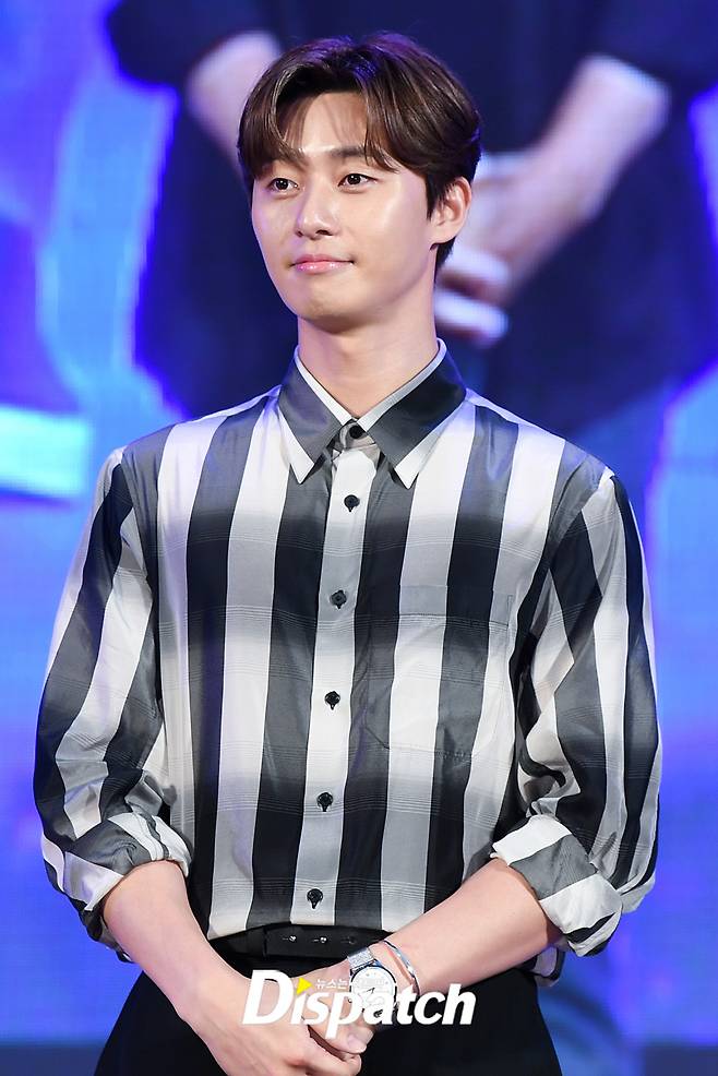 박서준은 이날 스트라이프 셔츠로 댄디한 패션을 완성했다.