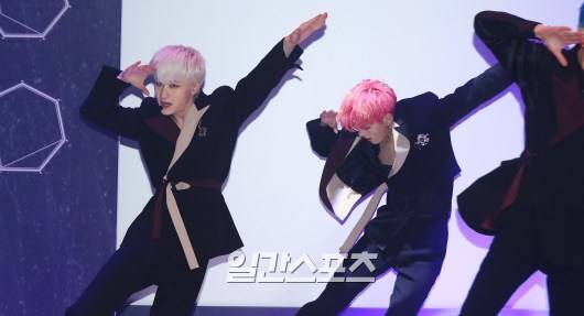 신인 그룹 어위크의 로건,진규가 19일 오전 서울 마포구 상암동 에스플렉스 센터에서 열린 데뷔 쇼케이스에 참석했다.