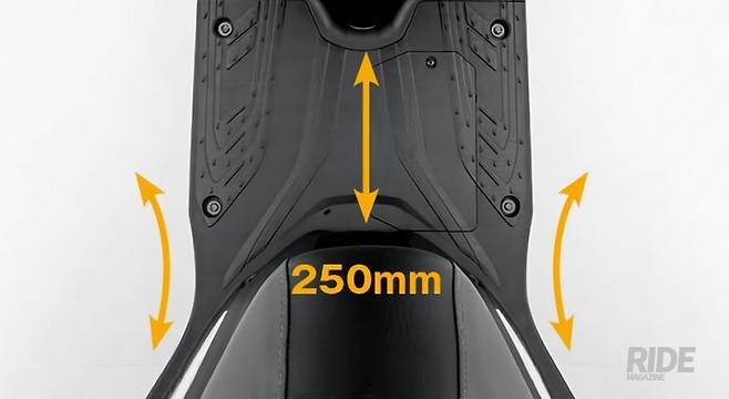 이외에도 넓은 발판 공간을 확보하여 주행 시 쾌적한 라이딩 포지션을 제공하며 큰 짐을 적재하여 운반하는 데에 활용할 수 있어 실용적이며 리어 캐리어를 기본 채용해 짐 적재를 위한 탑 케이스나 업종별 비즈니스 목적에 맞는 수납함을 간편히 설치할 수 있어 편리하다.