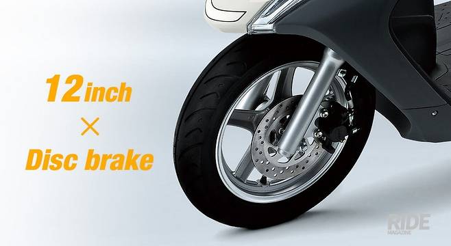 또한 주행 안정성과 적재성을 높이기 위해 기존 모델 대비 차체크기를 키웠으며, 안정적이고 편안한 승차감을 위해 대구경 12인치의 알루미늄 휠과 텔레스코픽 서스펜션을 채용하였다. 그리고 더욱 커진 휠과 타이어 크기에 맞추어 대구경 디스크 브레이크를 채용하여 강력하고 안정적인 제동성능을 제공한다.