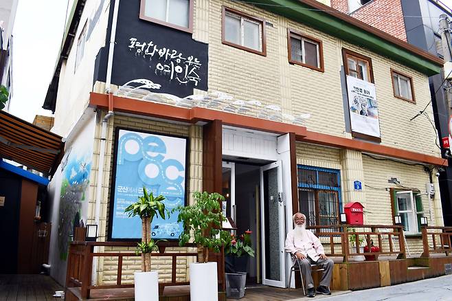 팔순을 앞둔 '길 위의 신부' 문정현(79). 20년 만에 군산으로 돌아온 그가 '평화바람 부는 여인숙'(https://www.peacewindinn.com)이라는 아주 특별한 문화공간을 차렸다. 월명동 동국사 가는 길목의 2층 건물이다. 1층은 전시 공간, 2층은 사람들이 쉬어갈 수 있는 여인숙. 주변에 적산가옥과 같은 일제 강점기 잔재가 남은 이곳에서 그는 평화 프로젝트 '반미쳐라!'의 첫 전시회 '군산에서 군산으로'를 진행하고 있다.