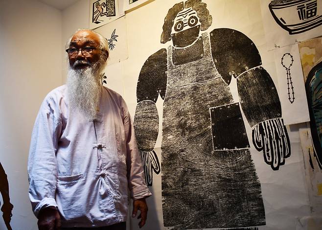 | ▲ 군산 '평화바람 부는 여인숙'에서 전시회를 하고 있는 문정현 신부. |