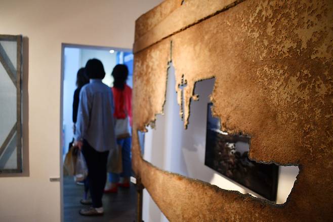 | ▲ '평화바람 부는 여인숙'의 전시공간을 둘러보는 관람객들. |