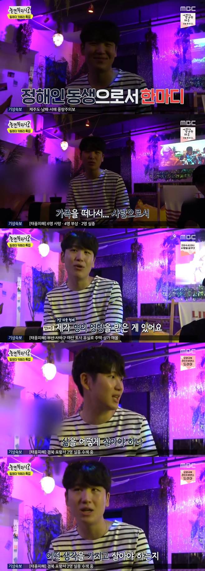 이어 정해인 친동생은 "형이 삶을 어떻게 살아야 하고 어떻게 사람을 대해야 하는지. 인생을 사는 방법을 알려줬다. 형이 하는 행동과 모습이 너무 좋다"고 덧붙였다.(사진=MBC '놀면 뭐하니? - 릴레이 카메라 특집' 캡처)