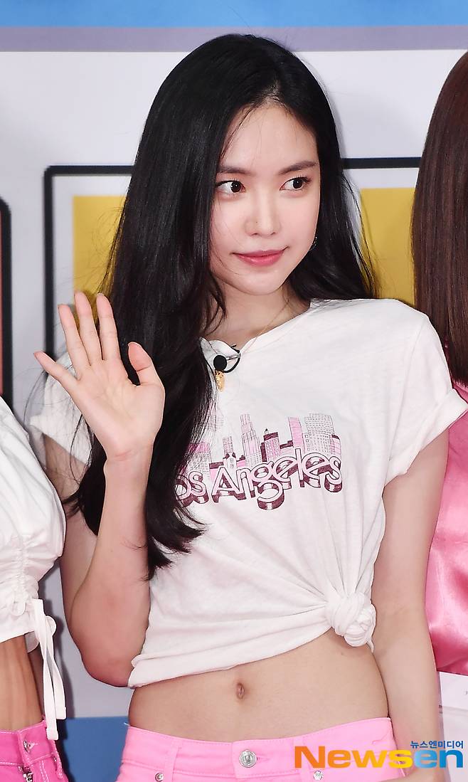 이날 에이핑크 윤보미,손나은이 크롭 상의 패션으로 복부를 노출시켰다.
