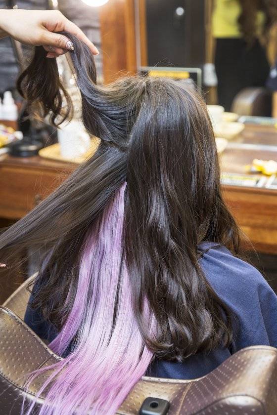 after 밋밋한 검은 머리카락 사이로 보이는 라벤더 컬러 포인트 붙임머리가 시선을 집중시킨다.