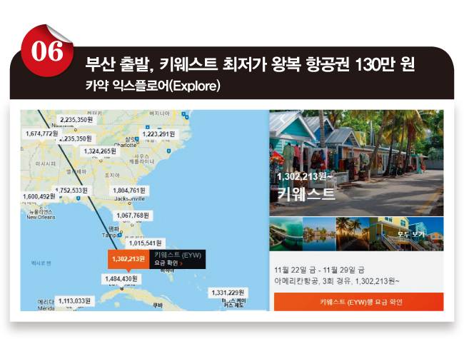 부산 출발, 키웨스트 왕복 항공권