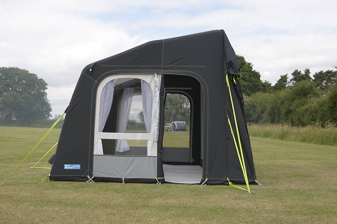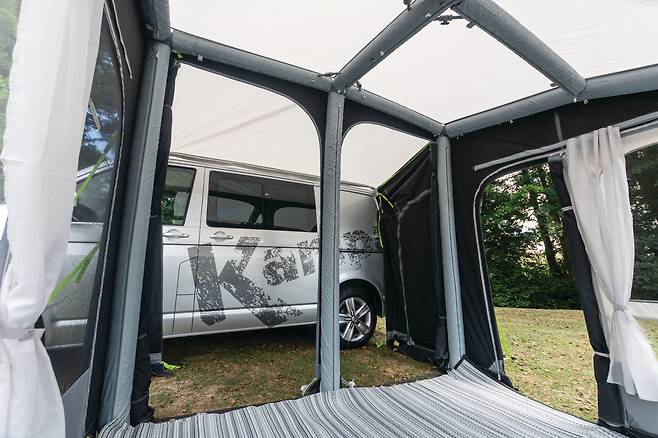 캠퍼밴에 적합한 어닝 텐트로 가로 330 X 세로 390 X 높이 240cm의 공간을 제공한다. 에어펌프를 통해 공기를 주입하고 부피와 무게에 대한 부담 외에 겨울철 따스한 리빙룸 공간을 제공하고 있다.