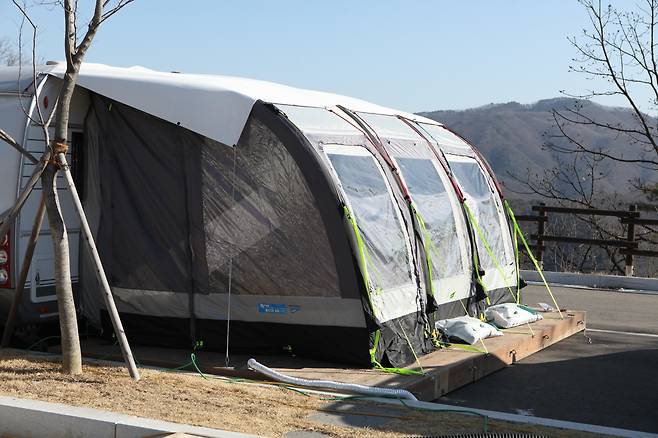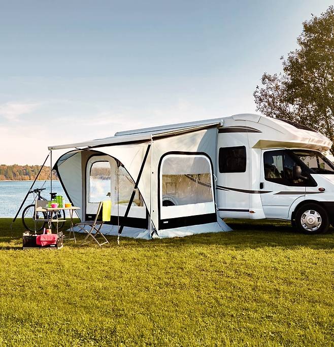 대부분의 시설이 내부에 잘 갖추어진 캠핑카지만 겨울철 야외에서 지내는 시간이 길어진다면 실내에서만 시간을 보내거나 조리를 하는 것에는 제약이 따르곤 한다. 여름철이라면 어닝 하나로 시워스러운 그늘막을 만들고 방충망을 쳐 시원한 바람이 통하도록 하겠지만 겨울철은 그 반대로 외부의 찬바람을 막아주어야 한다. 외부 활동을 위한 또 다른 무언가가 필요하게 된다. 어닝이나 카라반, 캠핑카의 레일에 끼우는 확장텐트 그 종류와 특징에 대해 이야기를 시작해본다.