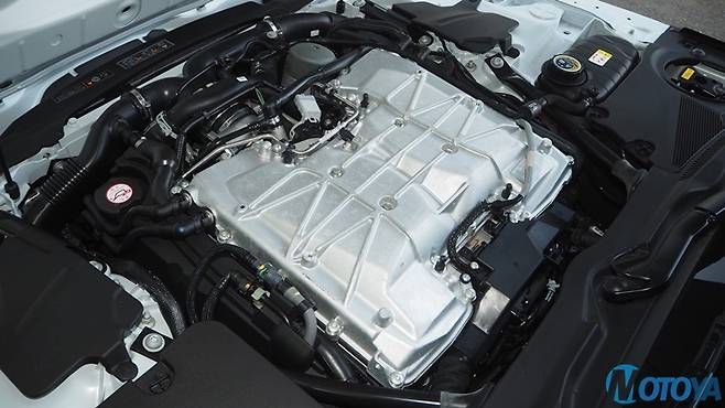 재규어 F-타입 SVR의 심장을 들여다 보기 위해서는 보닛을 앞으로 열어야 한다. 이는 XK는 물론, 선대모델이라 주장하는 E-타입 때부터 전해 내려오는 일종의 전통으로 보면 되겠다. F-타입 SVR의 엔진은 재규어의 AJ-V8 Gen III 엔진으로, 575마력의 최고출력과 71.4kg.m의 최대토크를 발휘한다. 0-100km/h 가속 시간은 3.7초에 불과하다.