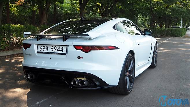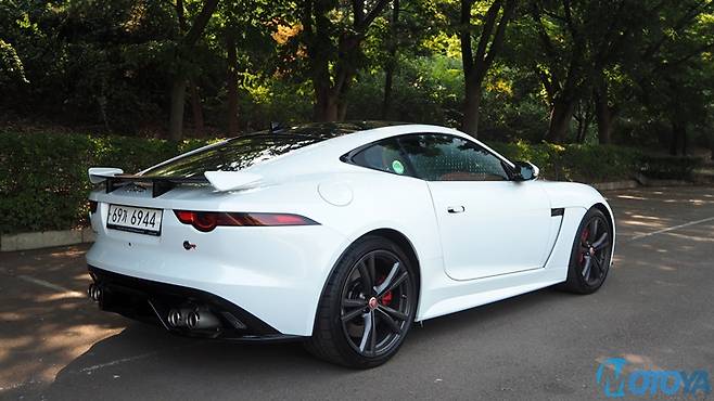 하지만 재규어에게는 세단보다도 더 오래된 스포츠카의 전통이 있다. 스왈로우 사이드카 컴퍼니(Swallow Sidecar Company Ltd.)시절부터 회사의 이름을 알린 ‘SS100’을 시작으로 고성능 자동차의 이미지를 심어 준 ‘XK120’, 그리고 르망24시 레이스 무대를 휩쓴 C-타입과 D-타입을 토대로 개발된 세기의 걸작 ‘E-타입’, 20세기 재규어 기술력의 정점을 보여 준 슈퍼카 ‘XJ220’, 그리고 이번에 시승한 F-타입의 선대 모델이자, 현대적인 GT이기도 했던 ‘XK’ 시리즈 등, 스포츠카는 재규어의 역사에서 항상 자리하고 있었다. 그리고 E-타입을 정신적인 선대 모델로 칭한, 재규어의 최신 스포츠카, F-타입 역시 재규어의 역사와 함께 하고 있다. 이번에 시승한 F-타입은 그 중에서도 궁극의 F-타입라 할 수 있는 SVR 쿠페 모델을 시승했다. VAT 포함 가격은 2억 1,590만원.