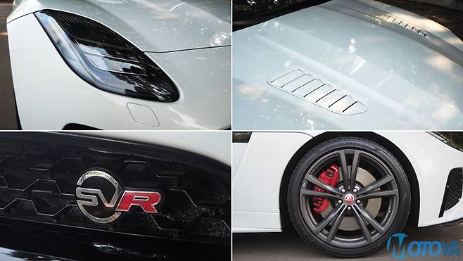 재규어 F-타입 SVR 쿠페는 그 외양에서부터 F-타입 고유의 매혹적인 형상을 그대로 품은 채, 궁극의 F-타입임을 암시하는 다양한 전용 디테일로 꾸며져 있다. 전방엔진 후륜구동 쿠페의 스타일링에서 가장 전통적인 방법론이라고 할 수 있는 롱노즈 숏데크의 비례를 모범적으로 따르고 있다. 그리고 여기에 다른 F-타입과는 확실하게 비교되는 모습으로 시선을 사로 잡는다.