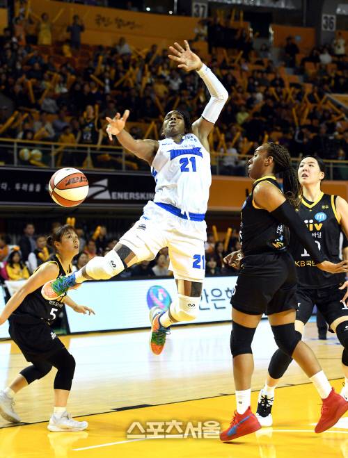 우리은행은 3승으로 무패를 달리던 KB스타즈에 시즌 첫 패를 안기며 3승 1패로 공동 1위로 올라섰다. 2019. 10. 30.