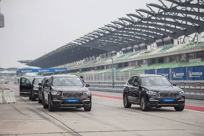 출발 전 도열한 BMW X3. 비교 실험 무대는 말레이시아 세팡 F1 인터내셔널 서킷이다
