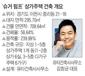 경기도 이천시 중리동에 지은 지상 5층 상가주택 '슈거 럼프(Sugar Lump ·각설탕)'. 이름처럼 네모난 각설탕 여러 개를 엇갈리게 쌓아놓은 듯한 외관이 눈길을 사로잡는다. 네모난 상자 모양의 주변 다세대·다가구주택과 확실히 대비된다. 2014년 완공해 5년 남짓 지났는데 디자인이 워낙 독특해 이 건물을 모르는 동네 주민은 거의 없다.