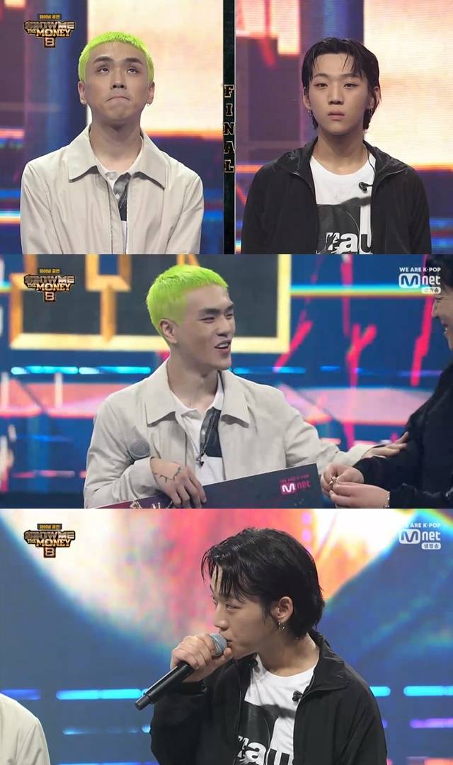 펀치넬로는 “지금 현실감이 안 느껴질 정도로 기쁘다”고 짤막한 우승소감을 밝혔다. 준우승을 차지한 영비는 “‘쇼미더머니 시즌8’을 통해 많은 팬이 생긴 것 같아 기쁘다”고 덧붙였다. (사진=Mnet ‘쇼미더머니 시즌8’ 캡처)