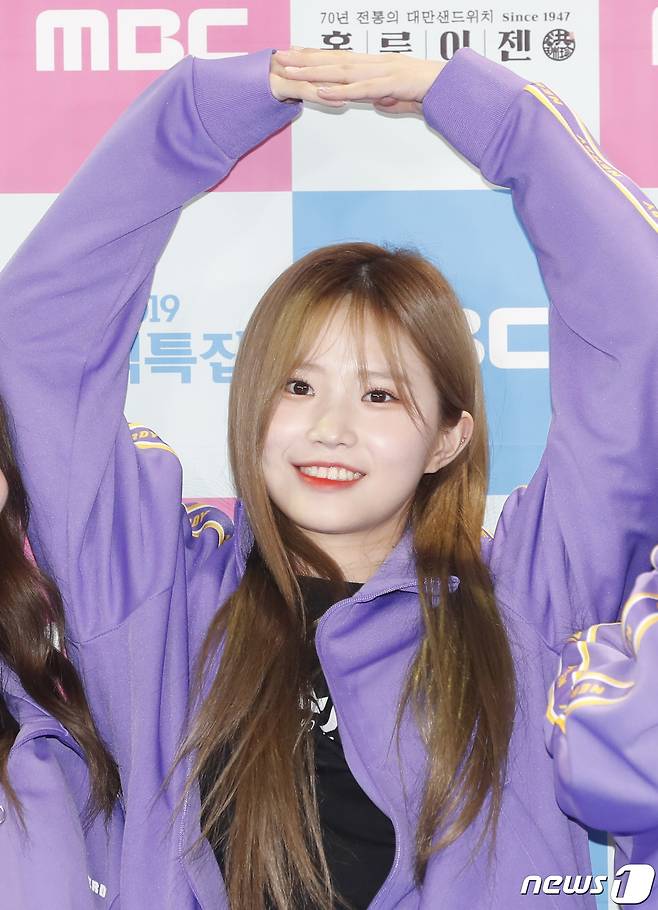 (고양=뉴스1) 권현진 기자 = 프로미스나인 송하영이 12일 오전 경기도 고양체육관에서 열린 ‘2019 추석특집 아이돌스타 선수권대회’(아육대) 출근길 공개 포토 행사에 참석해 포즈를 취하고 있다. 2019.8.12/뉴스1