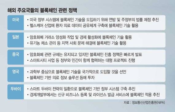 영국도 정부 주도로 블록체인 기반 의료 정보 솔루션 개발, 분산원장 기술 개발 등에 투자를 집행하고 있다. 두바이도 블록체인 기반 스마트시티 구축을 위해 투자하고 있다.