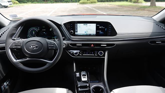하이브리드 전용 6단 자동변속기는 능동변속 제어 기능을 갖췄다. 초당 500회 모니터링을 통해 빠르고 부드럽게 변속을 구현한다. 변속레버는 없다. 버튼이 그 기능을 대신한다.