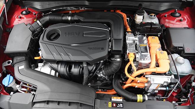 하이브리드 파워트레인은 2.0 가솔린 엔진, 영구자석형 전기모터, 리튬이온 배터리, 하이브리드 전용 6단 변속기로 구성된다. 엔진 151마력, 모터 38kW의 힘을 바탕으로 총 시스템 출력 195마력에 달한다. 17인치 타이어 적용 기준 공차중량은 1,505kg. 마력당 무게비는 7.7kg 수준. 중형세단으로 충분한 힘의 효율이다.